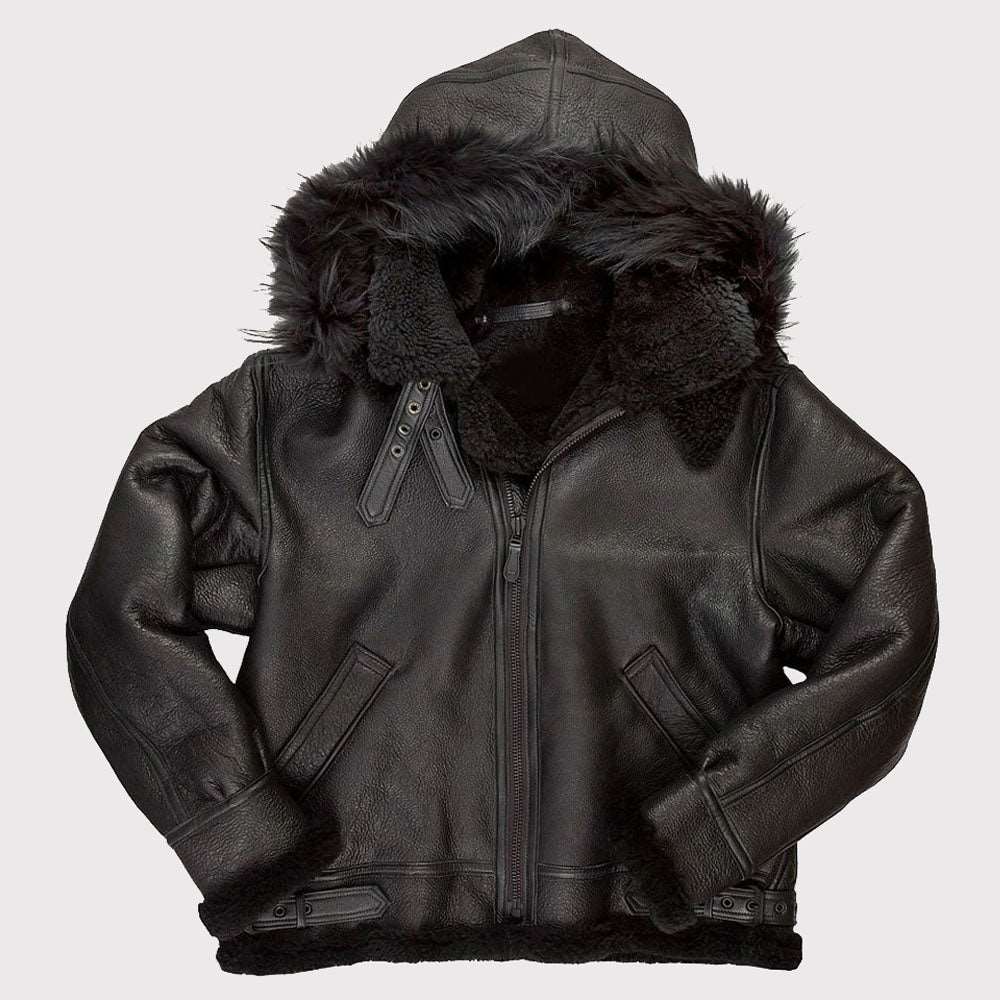 Draped in high-quality sheepskin material, this bomber jacket ensures a luxurious feel against your skin. The removable fur hood adds a touch of elegance, allowing you to tailor your look based on the occasion. Picture yourself strolling through the city or escaping to the countryside—the B-3 Black Hooded Bomber Jacket is your versatile companion.