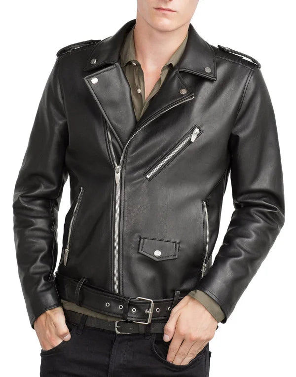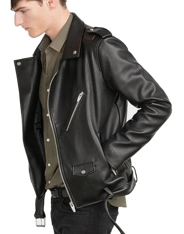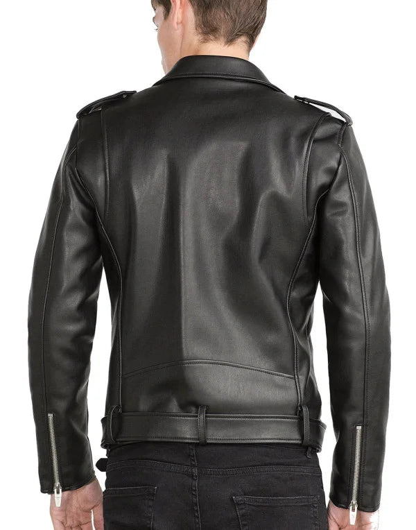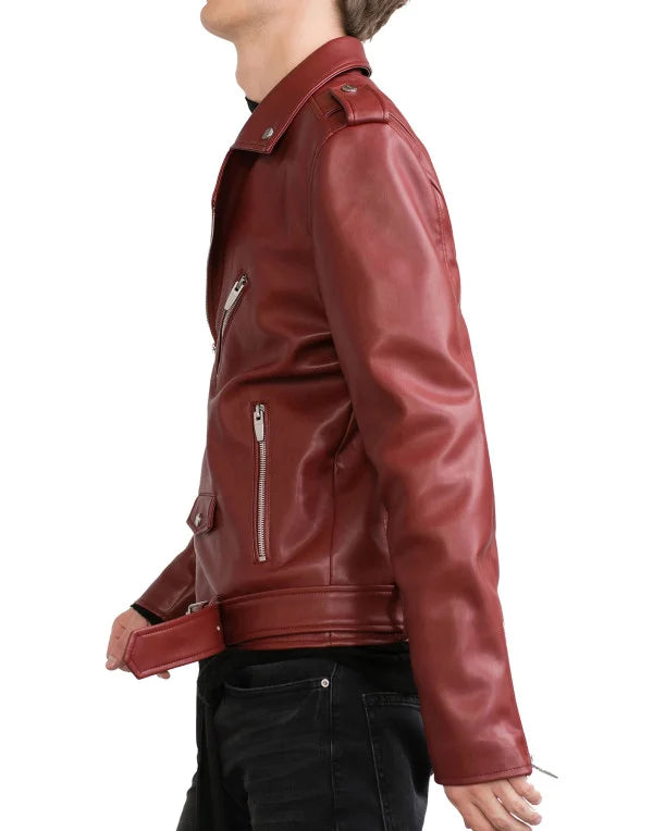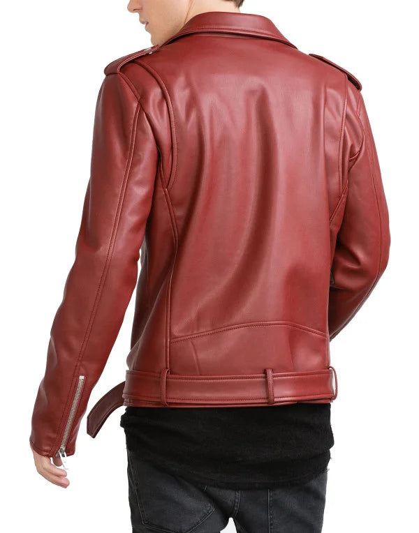 Men Slim Fit Glossy Red USA Biker Leather Jacket