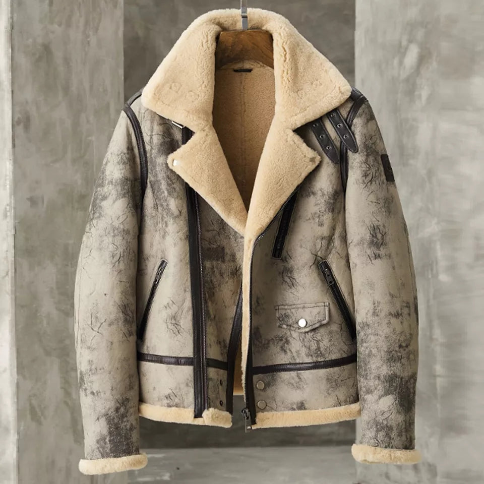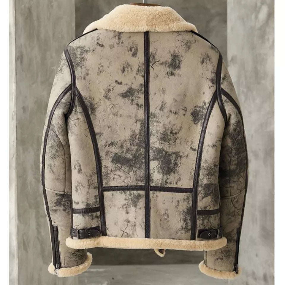 Men's B3 Flight Bomber Aviator Shearling Biker Jacket