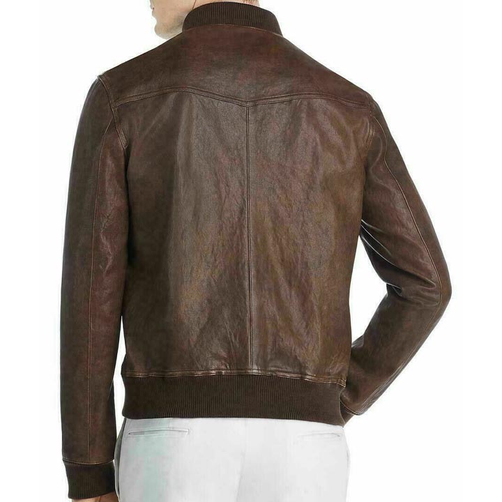 Men's Brown Leather Baseball Bomber Jacket