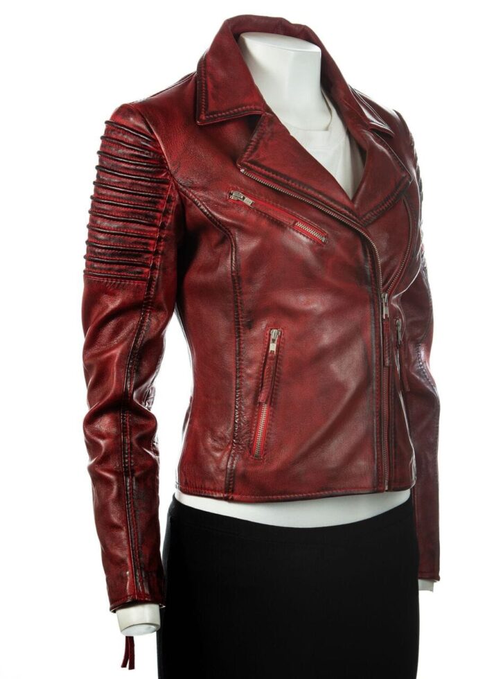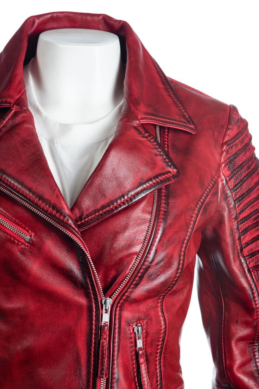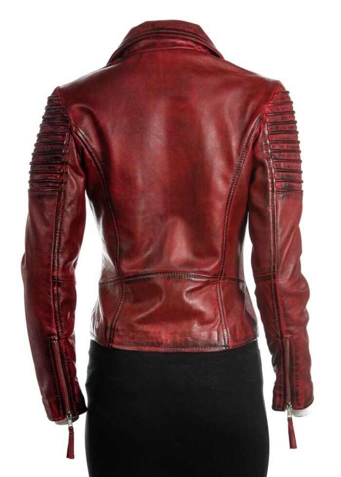 Women's Real sheepskin waxy leather jacket with sleeves laces details