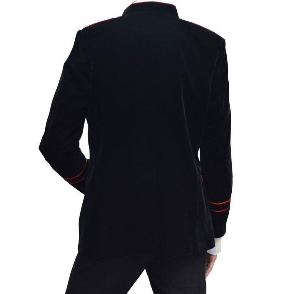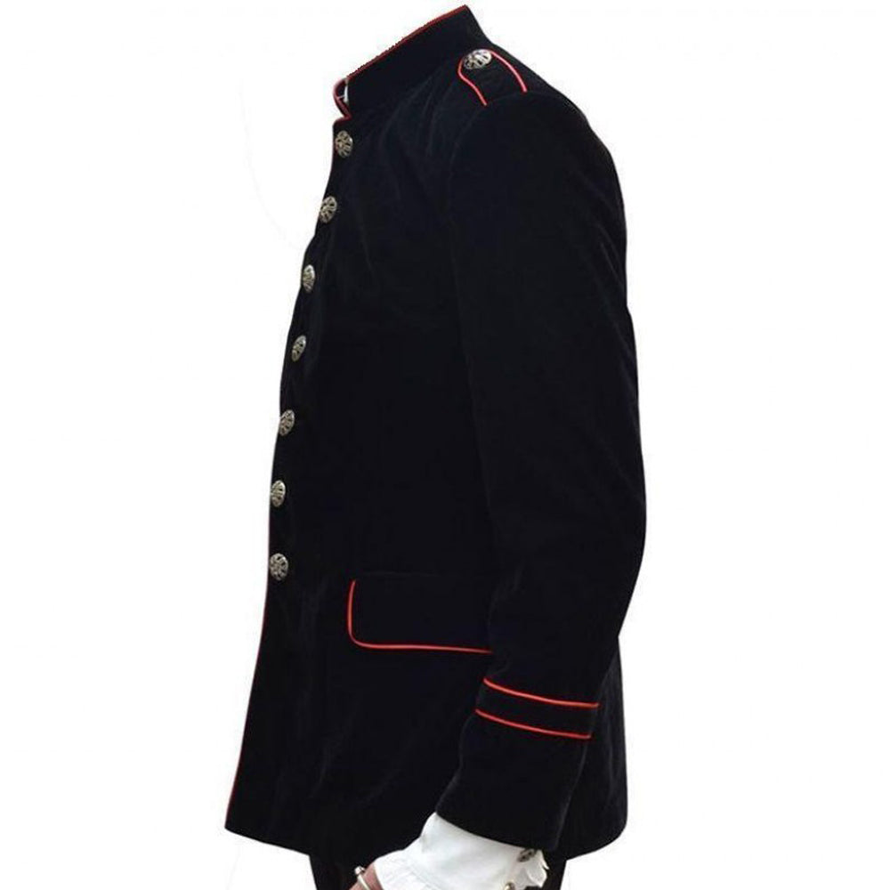 - Epaulets: Buttoned Epaulets with Red Trim – Military-inspired shoulder design.